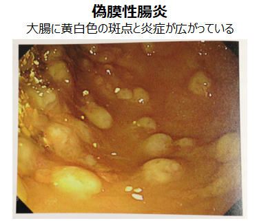 偽膜性腸炎(ぎまくせいちょうえん)という腸炎を発症し、最悪の場合は死に至ってしまいます。